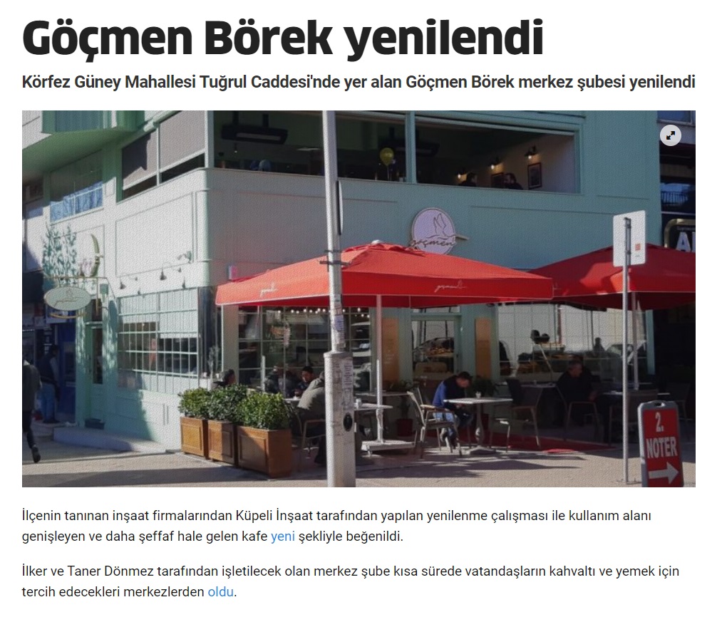 Körfez Güney Mahallesi Tuğrul Caddesi'nde yer alan Göçmen Börek merkez şubesi yenilendi (Ses Kocaeli, 07.12.2021)