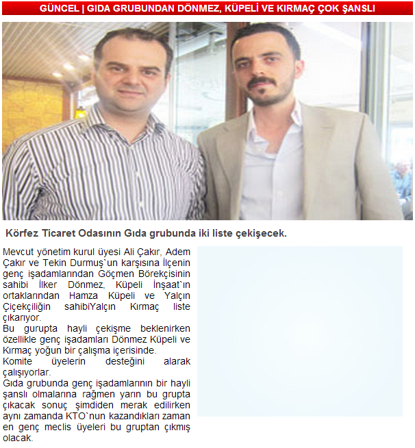 Körfez Ticaret Odasının Gıda grubunda iki liste çekişecek (Bizim Kocaeli, 03.05.2013)