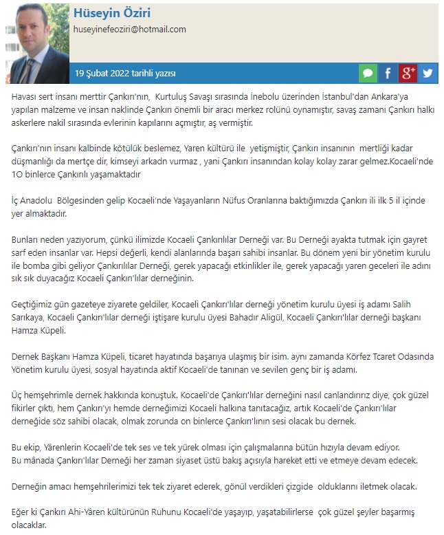 Havası Sert ,İnsanı Merttir Çankırı'nın (Flash Kocaeli Gazetesi, 19 Şubat 2022)